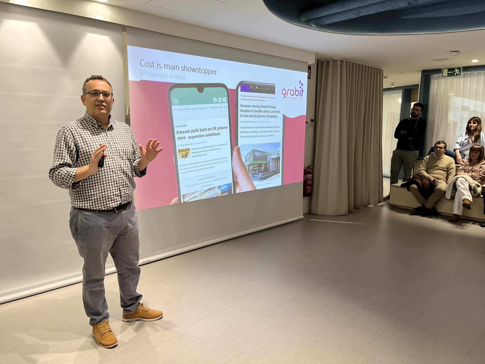 A lo largo del programa, celebrado en formato presencial en las oficinas de Lawesome, las cuatro startups finalistas tuvieron la oportunidad de defender sus proyectos. La primera de ellas, Grabit AI, software de visión artificial que se integra fácilmente en los procesos mediante un modelo SaaS. “Nos adecuamos a las necesidades de nuestros clientes en sectores tan diversos como industria, seguridad, comercio o alimentación”.